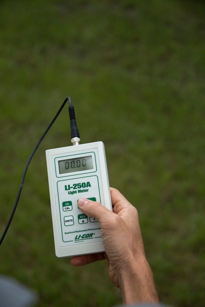 De LI-250A is een draagbare meter die de output weergeeft van elke LI-COR- lichtsensor met een kabel met een BNC-connector. Hij toont momentane waarden of gemiddelden over 15 seconden van de waarden van een sensor.