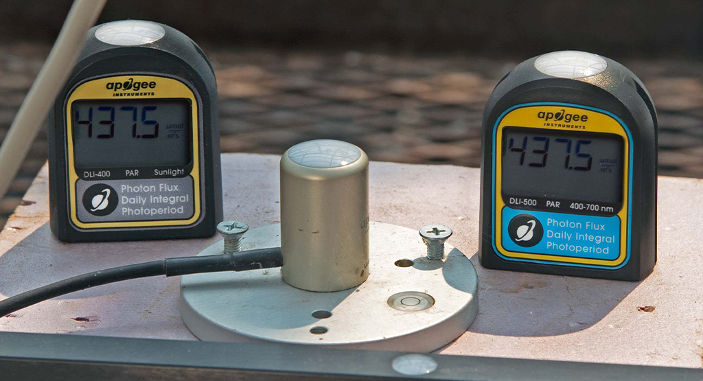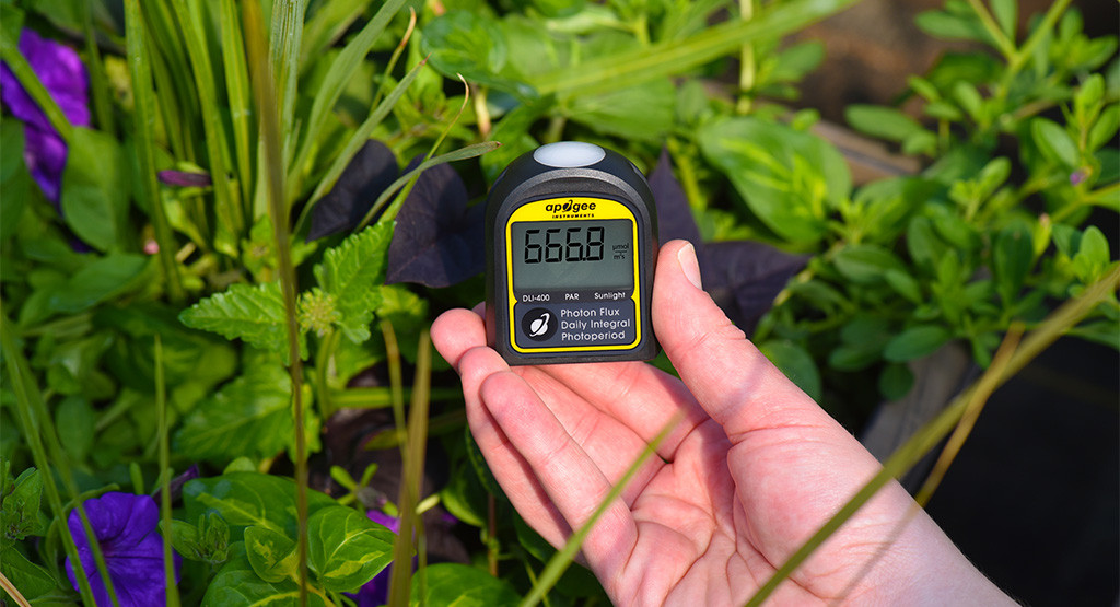 De nieuwe DLI-400 meter van Apogee is ontworpen om fotosynthetisch actieve straling (PAR) 400-700 nm te meten en is een goedkope optie die enkel nauwkeurig is onder zonlicht. Naast het meten van PAR berekent de DLI-400 meter de dagelijkse lichtsom (Daily Light Integral (DLI)) en fotoperiode. DLI verwijst naar de totale hoeveelheid PAR er per dag op een vierkante meter valt, uitgedrukt in eenheden van mol per vierkante meter per dag. Fotoperiode, ook wel dag periode, is de totale hoeveelheid tijd waarin PAR wordt aangetroffen in een vliegtuig gedurende een periode van 24 uur en wordt uitgedrukt in eenheden van uren (h). Zowel DLI als fotoperiode beïnvloeden de groei en ontwikkeling van planten, en ze worden vaak gemeten in kassen en groeikamers om te helpen bij lichtbeheer en besluitvorming.