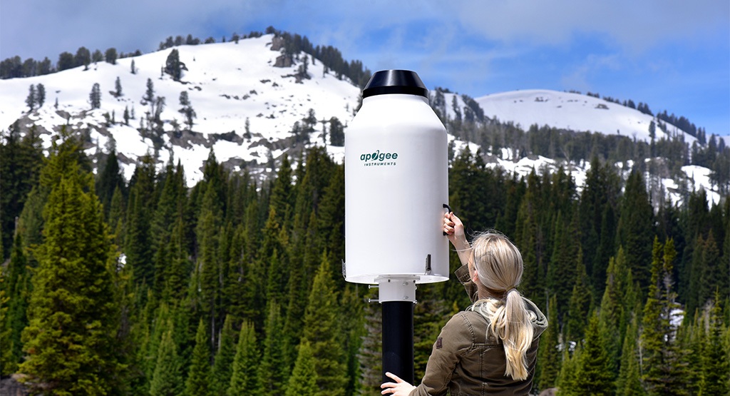 De Apogee Cloudburst neerslagmeter, gebaseerd op een weegprincipe en meet de totale neerslag van regen, sneeuw, ijzel en hagel en is uitgerust met een algoritme om te corrigeren voor temperatuur, verdamping en trillingen.