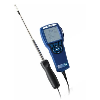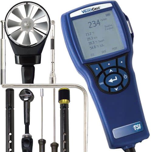 Luchtsnelheden kunnen gemeten worden met een thermo-anemometer TA meetvoeler met een meetbereik van 0…50 m/s of met behulp van een pitot buis met een meetbereik van 1,27…78,7 m/s of optioneel met een vleugelrad plug-in probe met een meetbereik van 0,25…30 m/s.